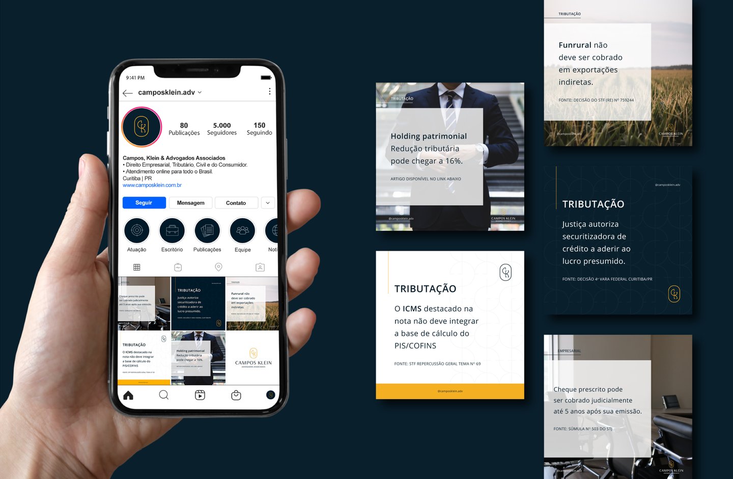 O escritório Campos, Klein & Advogados Associados oferece serviços especializados no atendimento jurídico de empresas e pessoas físicas nas áreas do Direito empresarial, tributário, civil e do consumidor. Como a empresa estava completando cinco anos de mercado, os sócios viram uma oportunidade de fazer um redesign da marca para demarcar sua nova fase e transmitir mais profissionalismo e qualidade.
